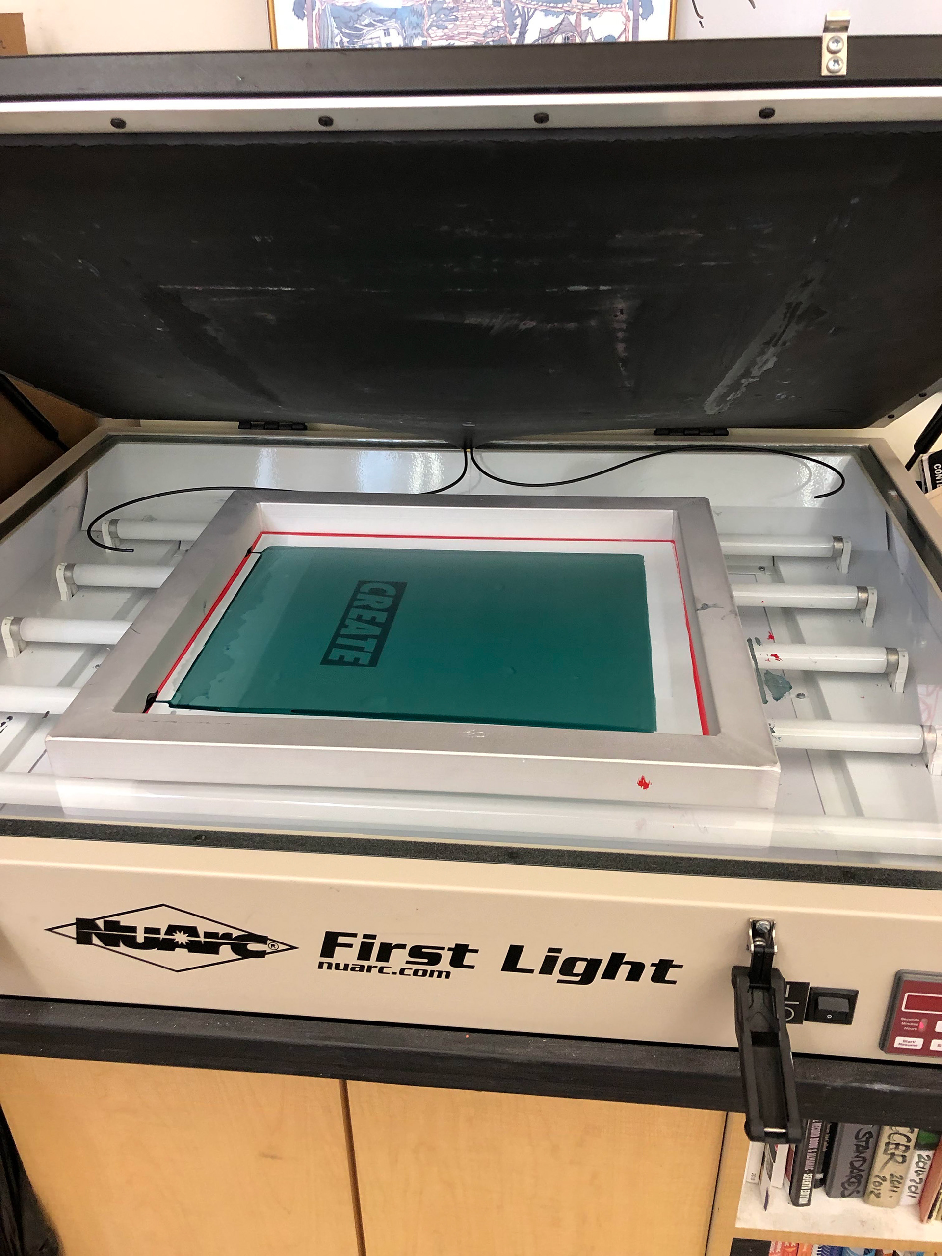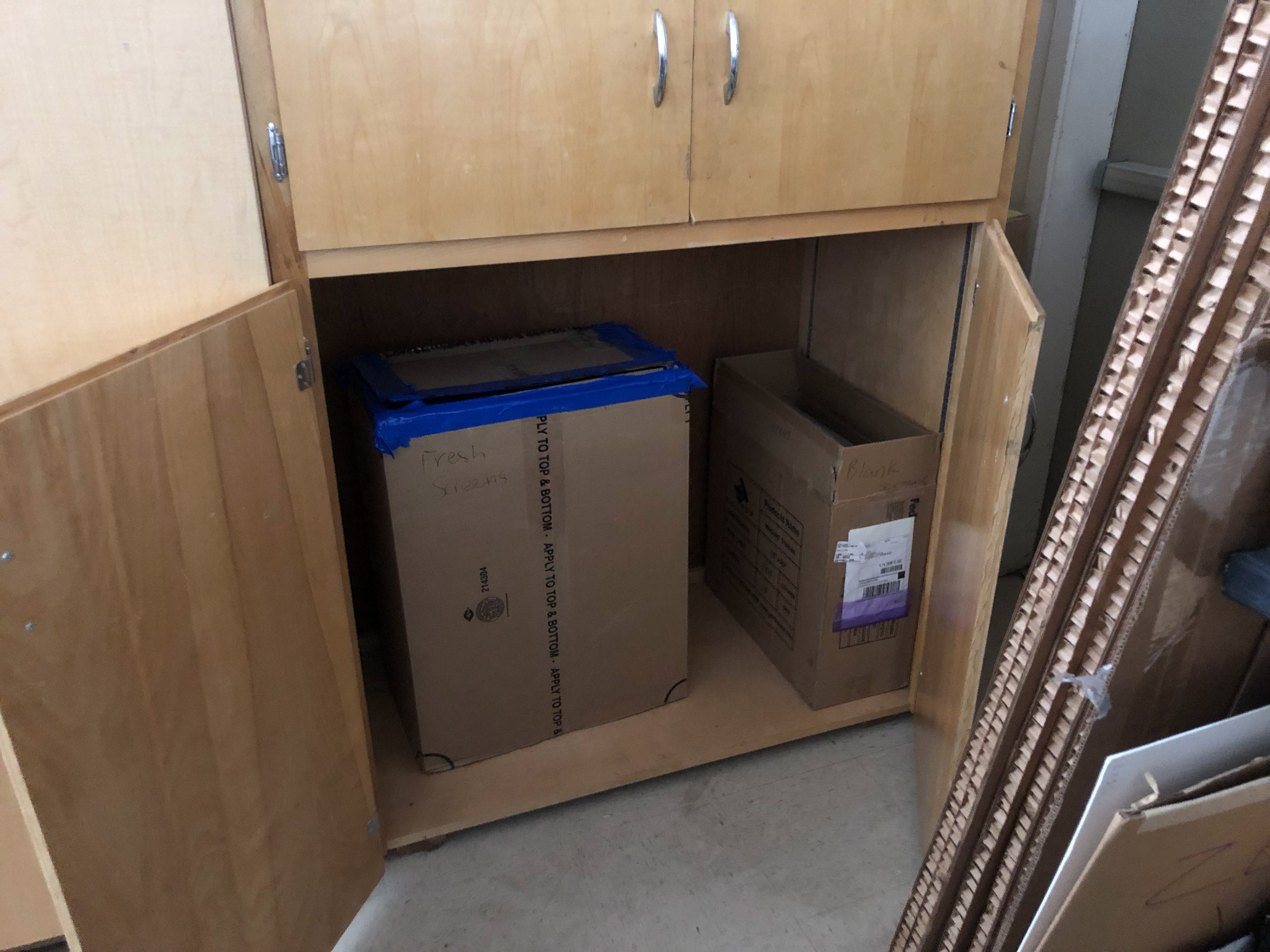The box on the left is the light tight box the screens dry in and the one on the right are fresh screens.